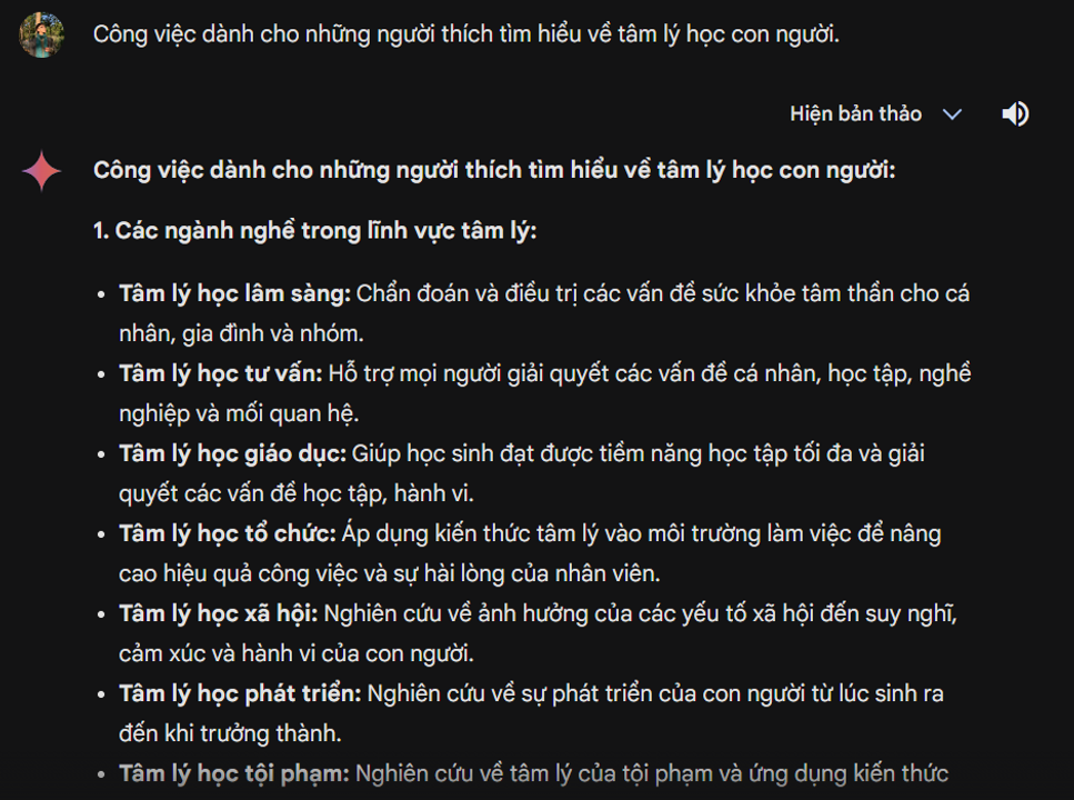 Ví dụ: Mình có sở thích là đọc sách về tâm lý học hành vi, sách khoa học vì mình thích được hiểu sâu về động cơ hoạt động của tâm lý học con người. Mình có thể gõ là: "Công việc dành cho những người thích tìm hiểu về tâm lý học con người."