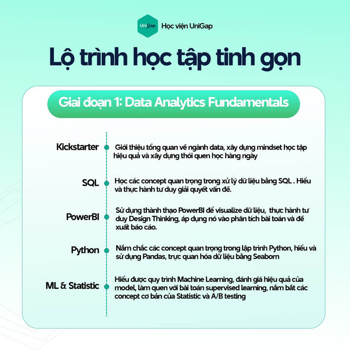 Học Data Analyst với UniGap không phải để “biết cho vui” mà để thay đổi sự nghiệp, nâng cấp tư duy, mở ra cánh cửa mới.