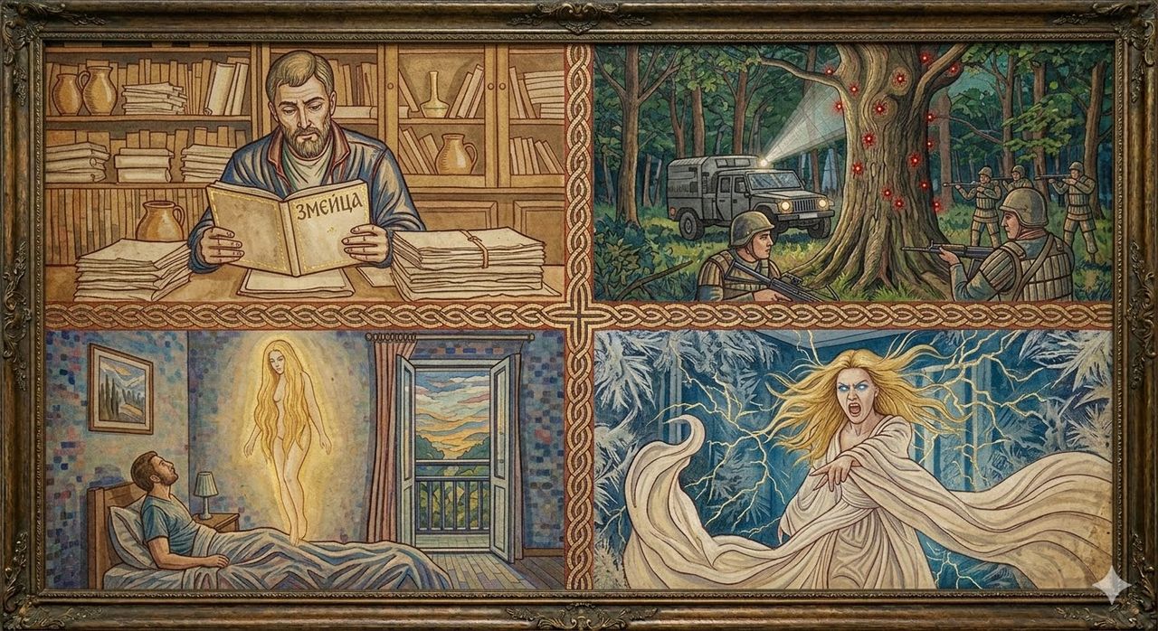 Nhà nghiên cứu đã đặt những câu hỏi làm rõ với người phụ nữ kể huyền thoại. Theo bà, những sinh vật này sống dưới lòng đất. Họ ra ngoài thế giới của chúng ta vào ngày 25 tháng 3, Blagovets, và trở về thế giới của họ vào ngày 30 tháng 8 để trải qua mùa đông ở đó. Có những sinh vật nam và nữ như vậy – Zmeiove (Zmei) và Zmeitsi (Zmeitsa). Những con đực mê hoặc các cô gái trẻ loài người chỉ bằng một cái nhìn và lấy họ làm vợ. Từ những cuộc hôn nhân như vậy, những đứa trẻ có sức mạnh đáng sợ và khả năng siêu nhiên được sinh ra. Ngược lại, những Zmeitsi cái lại lấy những người đàn ông và hút sinh lực của họ, bù lại bằng sự giàu sang và thịnh vượng lớn lao. Trước đây họ thường gặp nhau, nhưng kể từ khi con người phát minh ra điện và quấn quanh trái đất bằng những sợi dây điện, họ dần dần ngừng xuất hiện. Rõ ràng là Zmeitsa của tôi đã tìm ra cách để vượt qua sự cách ly này.