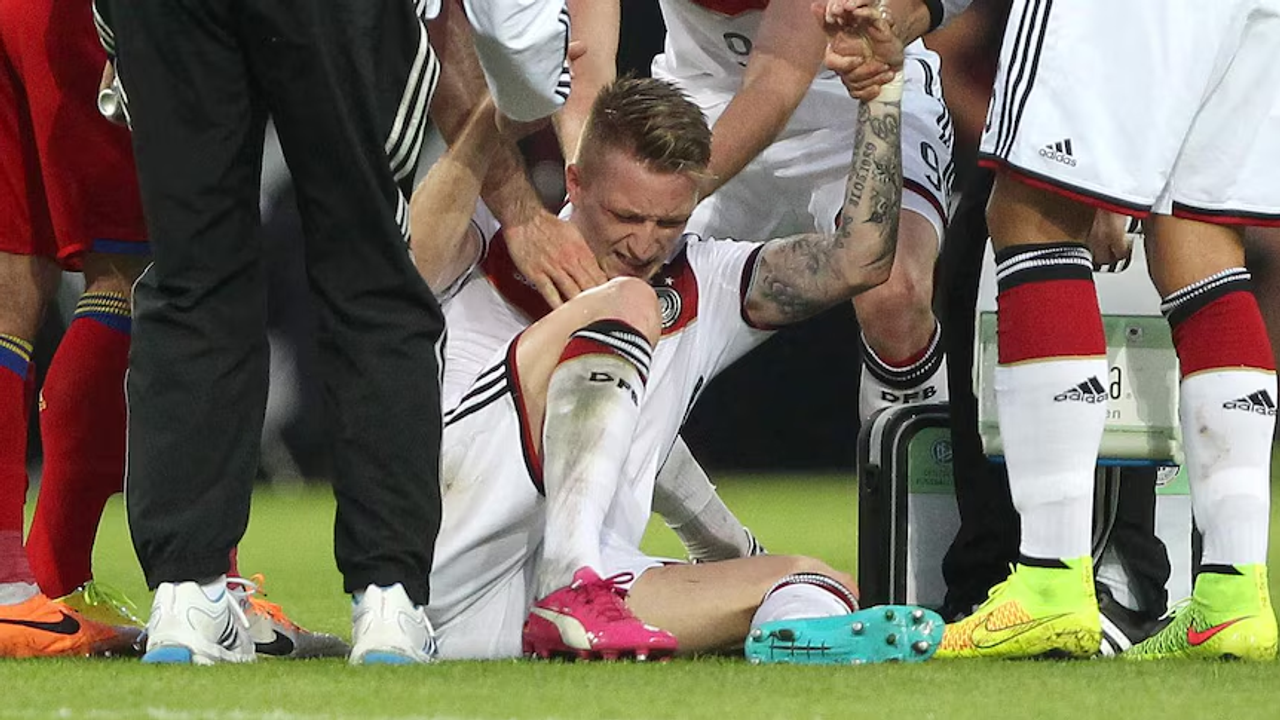 Nỗi đau lớn nhất, vết sẹo sâu hoắm không thể xóa nhòa, chính là mùa hè Brazil 2014. Khi ấy, Marco Reus đang ở độ chín nhất của sự nghiệp, là vũ khí hạt nhân mà HLV Joachim Löw định xây dựng lối chơi xung quanh. Nhưng chỉ 24 giờ trước khi cả đội lên đường sang Nam Mỹ, trong trận giao hữu vô thưởng vô phạt với Armenia, một cú gập cổ chân định mệnh đã cướp đi tất cả. Trong đêm chung kết tại Maracanã huyền thoại, khi Mario Götze ghi bàn thắng vàng đưa người Đức lên đỉnh thế giới, Reus đang ngồi một mình trong phòng khách sạn với cái chân băng bó. Hình ảnh Götze giơ cao chiếc áo số 21 của Reus giữa màn ăn mừng cuồng nhiệt vừa là sự tri ân đẹp đẽ, vừa là minh chứng chua xót cho sự vắng mặt của người xứng đáng nhất. Reus là nhà vô địch trong lòng đồng đội, nhưng trên giấy tờ lịch sử, anh chỉ là kẻ đứng ngoài cuộc vui.