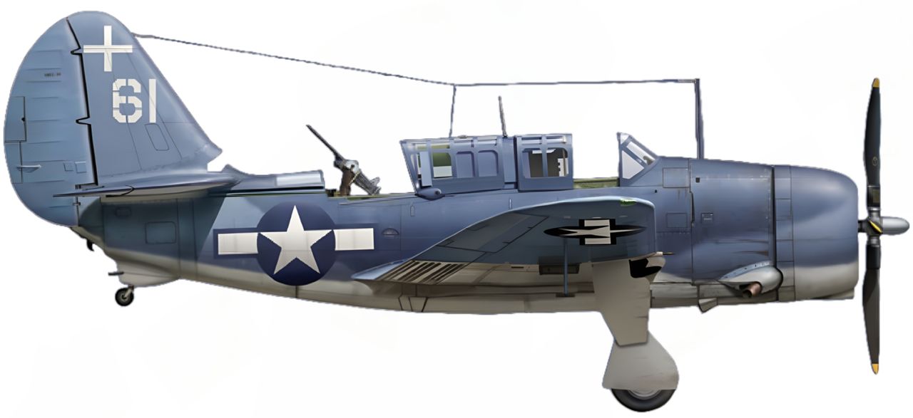 Hải quân Mỹ bước vào chiến tranh với loại máy bay ném bom bổ nhào đã được kiểm chứng – Douglas SBD Dauntless. Trong bối cảnh Devastator gặp nhiều vấn đề và ngư lôi Mark 13 thiếu độ tin cậy, Dauntless trở thành vũ khí tấn công duy nhất từ tàu sân bay hoạt động hiệu quả một cách ổn định của Hải quân Mỹ trong giai đoạn 1942–43. Trong trận Midway, Dauntless chính là vũ khí không thể thiếu cho chiến thắng của người Mỹ. Đây là một máy bay đáng tin cậy, dễ bay và là nền tảng ổn định cho nhiệm vụ ném bom bổ nhào. Tuy nhiên, nó cũng có những hạn chế vì chỉ mang được tối đa 1.000 lb bom treo ngoài. Đồng thời thì SBD cũng có tốc độ tương đối chậm.