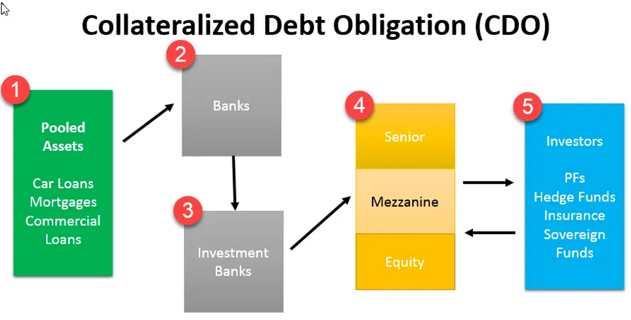 Nhưng Phố Wall không bao giờ dừng lại ở mức đơn giản. Họ biến MBS thành một lớp phức tạp hơn: CDO. Về cơ bản, CDO là MBS của các MBS – một sản phẩm tài chính được tạo ra từ việc đóng gói lại các sản phẩm MBS đã được đóng gói. Nếu MBS là chiếc bánh cũ, thì CDO là chiếc bánh cũ nhưng được làm như mới qua việc phủ lớp kem lừa gạt bên ngoài, trông đẹp mắt nhưng chứa đầy rủi ro bên trong.