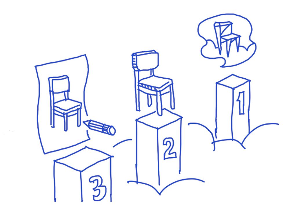 Cái này phải nói qua một chút về một trong những tư tưởng nổi bật nhất của Plato. Đại khái thì là ổng cho rằng thế giới vật chất mà chúng ta đang trải nghiệm hàng ngày chỉ là thế giới của sự vật cảm tính. Các sự vật cảm tính chỉ là cảm nhận của 5 giác quan mà thôi. “Thế giới thực” là thế giới ý niệm (Forms / Ideas). Nơi chứa các ý niệm là nguyên mẫu để phỏng chiếu ra sự vật cảm tính ở thế giới của chúng ta. Ví dụ: Ở thế giới ý niệm, có ý niệm chiếc ghế, ý niệm về chiếc ghế là bất biến. Nó là nguyên mẫu để phỏng chiếu ra chiếc ghế mà bạn đang ngồi ở thế giới cảm tính này. Chiếc ghế cảm tính của bạn có thể cong, vẹo, gãy, hỏng, và biến thành một thứ khác. Nhưng chiếc ghế “thật” ở trong thế giới ý niệm của Plato thì không bao giờ thay đổi, nó là chân lý cho mọi chiếc ghế ở thế giới chúng ta.