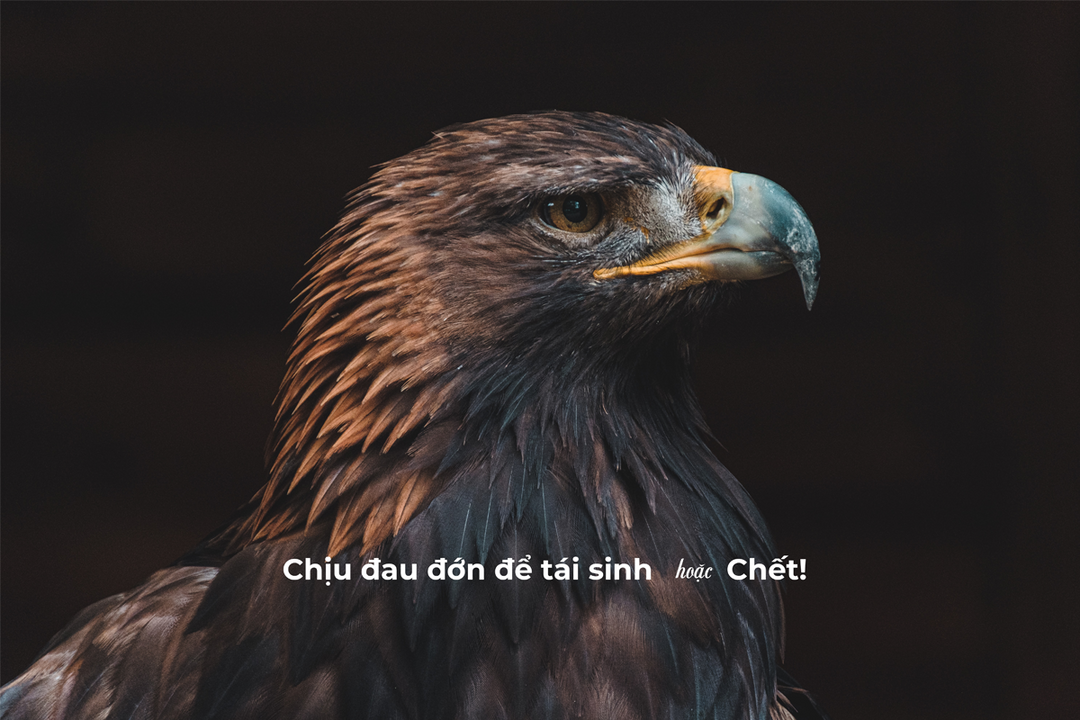 Đại bàng buộc phải lựa chọn “thay đổi hay là chết”. Để có thể nối dài sự sống, nó phải trải qua hành trình tự thay đổi đầy “đau đớn” kéo dài trong nhiều tháng trời. Cách thay đổi của đại bàng cũng đòi hỏi nó phải mạnh mẽ hết cỡ.
