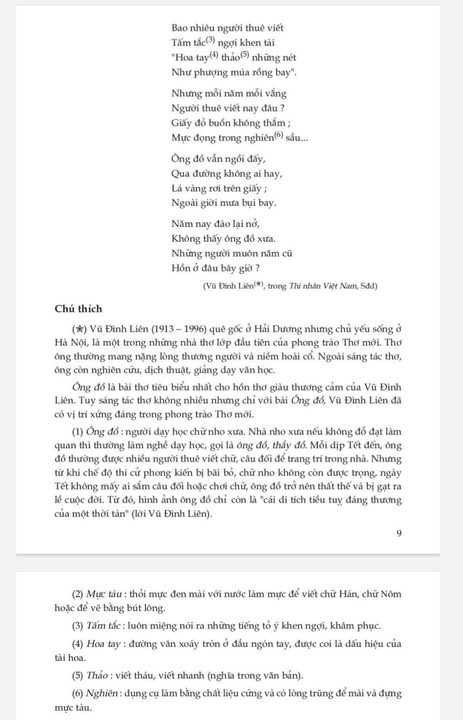 Năm nay đào lại nở Không thấy ông đồ xưa. Những người muôn năm cũ Hồn ở đâu bây giờ?