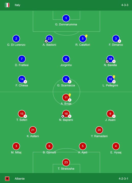 Sự kiên cường của Albania: Mặc dù để thủng lưới nhưng Albania không sụp đổ. Họ tiếp tục phòng ngự kiên quyết, tìm kiếm cơ hội để gỡ hòa. Tuy nhiên, hàng thủ Ý vẫn đứng vững, từ đó giành chiến thắng quan trọng cho nhà đương kim vô địch.