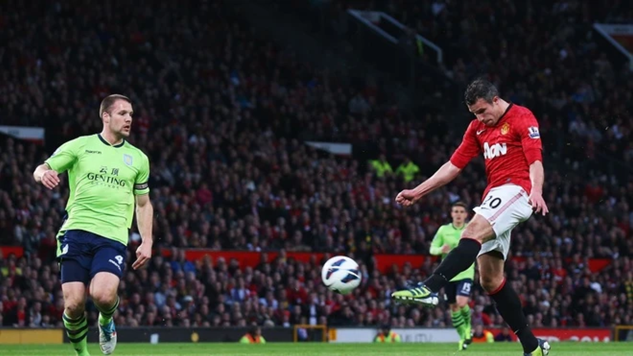 Ngày 22/04/2013, trận đấu với Aston Villa là "chung kết" để quyết định ngôi vương sớm. Van Persie đã biến đêm đó thành show diễn riêng của mình với một cú Hat-trick trong hiệp 1. Nhưng bàn thắng thứ hai mới là thứ đi vào lịch sử. Từ khoảng cách hơn 40 mét, Wayne Rooney phất một đường bóng dài như đặt. Van Persie, đang chạy với tốc độ cao, ngoái cổ nhìn bóng rơi xuống qua vai mình. Theo phản xạ thông thường, tiền đạo sẽ đỡ bóng lại. Nhưng Robin chọn giải pháp khó tin nhất: Một cú volley một chạm ngay trên không. Âm thanh khi mu bàn chân trái của anh tiếp xúc với trái bóng vang lên khô khốc và đầy uy lực. Bóng bay như một mũi tên xé gió găm thẳng vào lưới. Cả sân Old Trafford nổ tung. Sir Alex Ferguson sau này đã gọi đó là "Bàn thắng của thế kỷ". Đó là đỉnh cao của thẩm mỹ bóng đá: Sự kết hợp hoàn hảo giữa nhãn quan của người chuyền và kỹ thuật siêu việt của người dứt điểm.