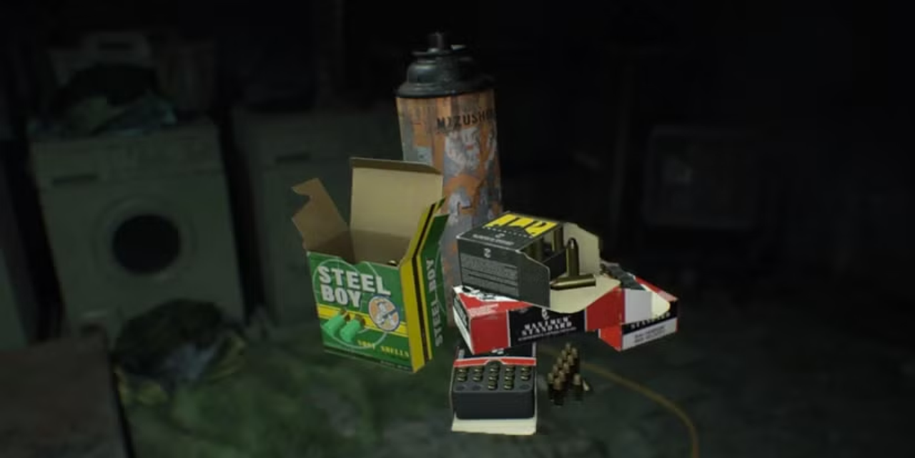 Đó là vấn đề thứ nhất, thứ đã làm nên cốt lõi kinh dị cho Resident Evil, vấn đề thứ 2 và cũng là thứ làm nên cái chất cho RE, đó là vấn đề số 2 đó là đạn dược và thuốc men hay quản lý tài nguyên. Đạn dược, vũ khí và thuốc men trong game tương đối khan hiếm, thay vì liên tục kiếm được đạn hay thuốc hồi máu sẵn. Capcom để cho người chơi phải cân nhắc nên chế tạo cái gì, và mang theo cái gì thông qua cơ chế chế đồ và đồ mang theo. Với cơ chế chế đồ, người chơi sẽ phải cân nhắc, tính toán, để chế ra đạn hay thuốc. Đặc biệt cơ chế này với 1 người từng chơi RE 2 remake như mình, thì RE 7 thực sự phải tính toán nhiều hơn, bởi trong phiên bản RE 2 Remake, việc đạn dược và thuốc men được chế tạo khác nhau, giúp mình dễ thở hơn khá nhiều, thì với RE7, đạn dược và thuốc men đều yêu cầu chung loại tài nguyên là túi hóa chất, điều đó có nghĩa là nếu bạn nhặt được thảo dược và thuốc súng, nhưng bạn lại chỉ có 1 túi hóa chất, bạn sẽ phải cân nhắc rất kỹ xem nên chế tạo thuốc hay bổ sung thêm đạn, thậm chí về sau, game còn đẻ ra túi hóa chất pro max giúp chế ra được đồ mạnh hơn (hồi máu nhiều hơn, đạn gây sát thương nhiều hơn), và bạn sẽ lại phải cân nhắc tiếp xem nên chế cái gì cho hợp lý. Bên cạnh việc đồ cần thì ít, đồ không cần lắm thì nhiều, game còn ném thêm vào cơ chế túi đồ mang theo, cụ thể trong suốt quá trình chơi game bên cạnh việc quản lý đạn dược, thuốc men, vũ khí thì bạn còn phải cân nhắc nên mang theo, cái nào nên bỏ lại, vì bạn sẽ bị giới hạn lại trong túi đồ mang theo bên mình và tham lam chưa bao giờ mang lại được kết quả tốt cho lắm đâu, và RE7 ác hơn RE2 khá nhiều, vì với RE2 khi một món đồ không còn được sử dụng đến, nó sẽ có biểu tượng dấu tích đỏ và bạn hoàn toàn có thể vứt đi mà không để lại hậu quả gì, hay như các tài liệu, tranh ảnh có chứa vị trí cất giấu đồ, nó được cho vào mục tài liệu của game. Thì với RE7, sẽ có rất nhiều thứ như là tranh ảnh, tài liệu, thậm chí là cả chìa khóa trong game, dù bạn có sử dụng xong đi chăng nữa, nó vẫn sẽ ở trong túi đồ của bạn, và bạn buộc phải cân nhắc kỹ nên mang cái gì và cất lại vào trong rương cái gì.