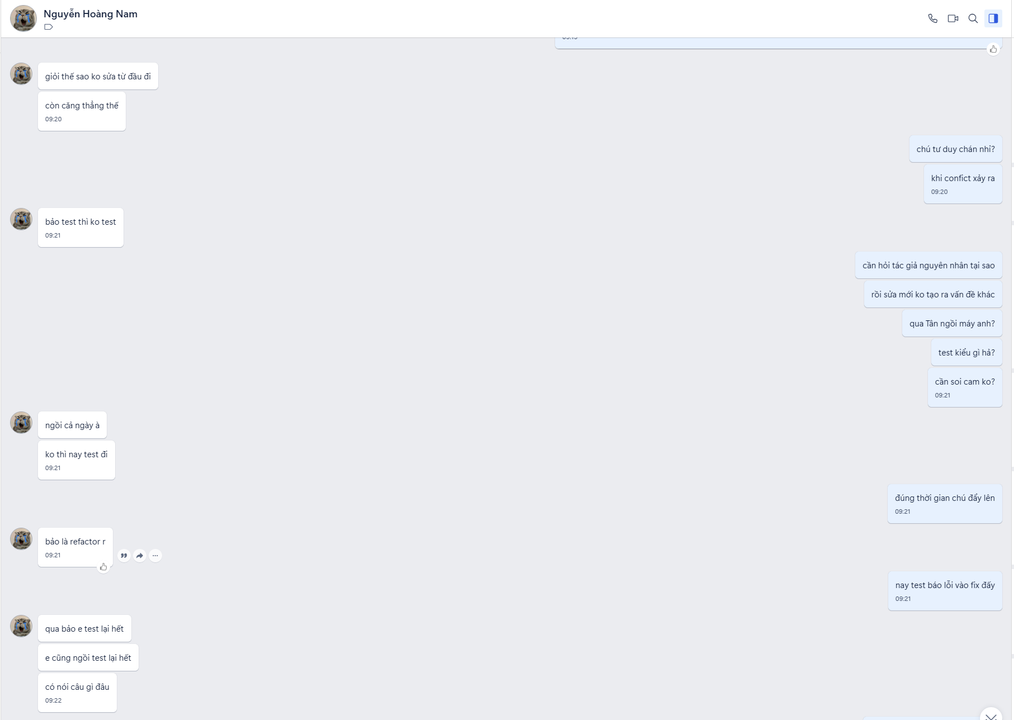 - Quy trình Agile, chạy sprint nhưng loạn xạ: sprint chạy nhưng không rõ ràng, tài liệu chưa chốt đã bắt làm. Ví dụ như mình chạy sprint 1 chạy trước và hoàn thành rồi, đến sprint 2 thì lại giao cho team khác làm, trong khi team hiện tại nhảy thẳng sang sprint 3, mà vốn dĩ luồng chạy phải tuần tự -_-