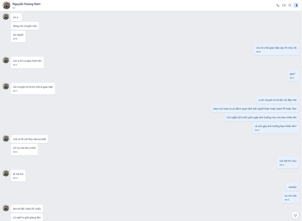 - Thái độ thiếu tôn trọng: nói những lời xúc phạm nhưng không xin lỗi. như "Anh câm mẹ mồm đi", "Mày nghĩ mày tài giỏi ak". Mình cũng hơi sốc khi nghe những lời này
