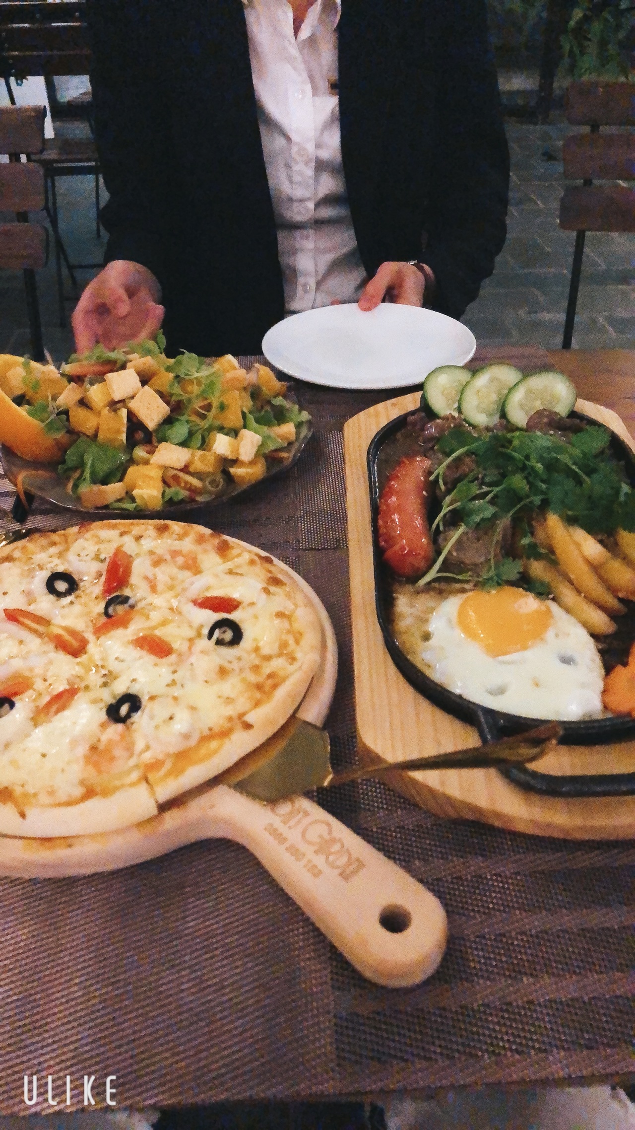 Tôi đến quán đúng hẹn vào lúc 7h tối tìm 1 vị trí bàn ăn ở ngoài trời khá đẹp thích hợp cho nói chuyện và ăn tối :). Tôi đã gọi cậu ấy và cậu ấy nói sẽ đi về luôn từ cơ quan (cái cơ quan gì mà ngày nào cũng bắt bạn tôi làm tới 8h tối ~~)