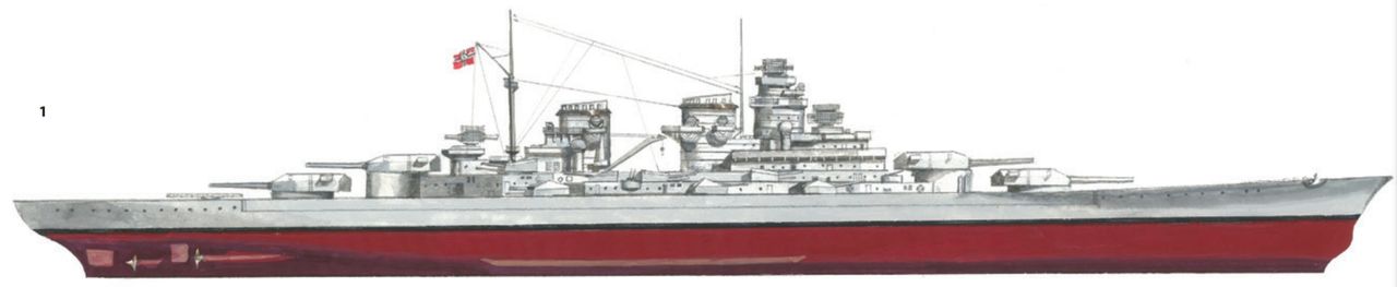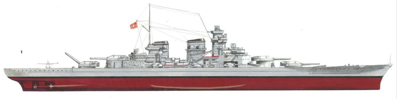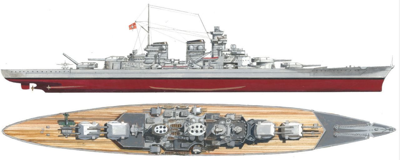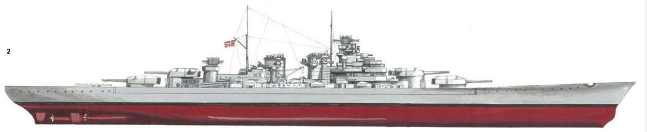 Sau khi Bismarck bị đánh chìm, người Đức đã điều Tirpitz (hiển thị trong ảnh) đến Na Uy, nơi nó trở thành một mối đe dọa tiềm tàng đối với các đoàn tàu vận tải của phe Đồng minh đến Liên Xô. Trong thời gian đóng tại Na Uy, Tirpitz bị tấn công bởi tàu ngầm mini của Anh và hàng loạt đợt không kích từ tàu sân bay, cho đến khi bị đánh chìm bởi máy bay ném bom hạng nặng mang bom 12.000 pound. Các thiết kế lớp H về sau đã rút kinh nghiệm từ trường hợp này bằng cách tăng cường bảo vệ đáy tàu và giáp ngang, nhưng người Đức nhận ra rằng không có cách nào để bảo vệ hiệu quả trước một quả bom 12.000 pound được thả từ độ cao lớn. (Naval History and Heritage Command)