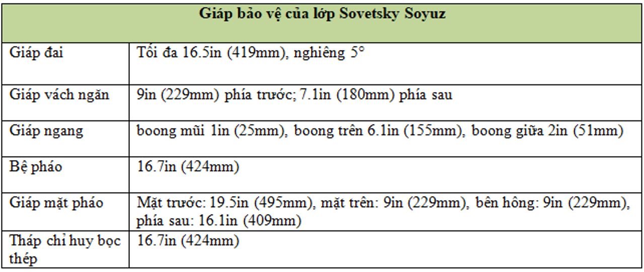 Quy mô bảo vệ dự kiến dành cho lớp tàu mới này là cực kỳ lớn. Yêu cầu thiết kế là phải chịu được đạn pháo 406mm (16 inch) và bom 1.100lb. Trên thực tế, tổng khối lượng giáp trang bị còn vượt cả lớp Yamato của Hải quân Nhật Bản. Tuy nhiên, khả năng bảo vệ này kém ấn tượng hơn con số thể hiện. Các nhà máy sản xuất giáp tại Liên Xô không thể chế tạo được các tấm giáp dày hơn 230mm. Vào tháng 11 năm 1940, người ta quyết định thay thế thép giáp xi-măng bằng loại thép tôi mặt cứng ở các khu vực cần giáp dày trên 8 inch. Đây là một sự sụt giảm đáng kể về khả năng bảo vệ vì thép không xi-măng của Liên Xô tỏ ra giòn hơn nhiều trong các thử nghiệm.