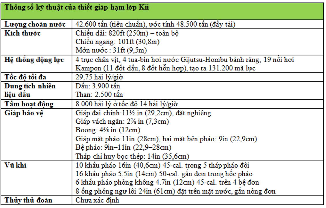 Lớp Kii phần lớn dựa trên các thiết giáp tuần dương hạm lớp Amagi trước đó, vốn lại dựa trên thiết kế lớp Tosa ít giáp hơn. Sự khác biệt lớn duy nhất giữa Kii và Amagi là tốc độ và lớp giáp của chúng - Amagi nhanh hơn, và Kii có đai giáp dày hơn . Bất chấp những điều này, Kii vẫn được người Nhật phân loại là "thiết giáp hạm cao tốc", vì họ đã quyết định chấm dứt sự khác biệt giữa "thiết giáp hạm" và "thiết giáp tuần dương hạm".