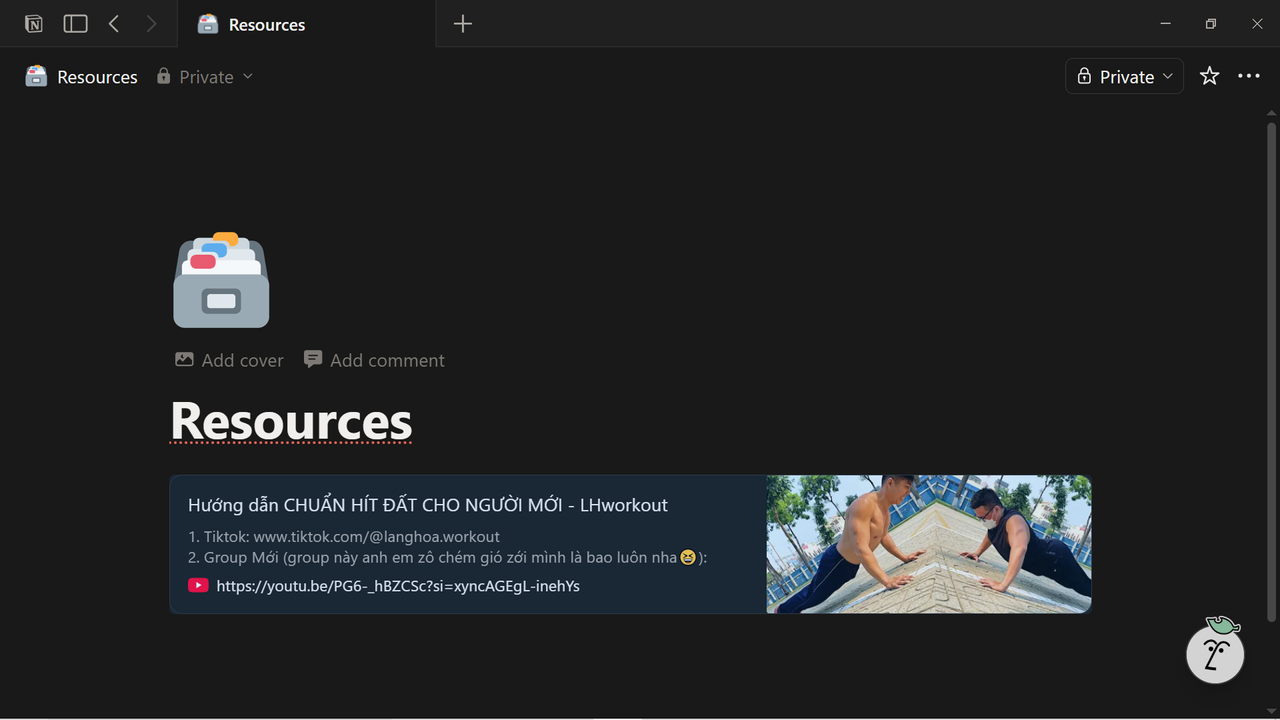 Tôi muốn bắt đầu rèn luyện sức khỏe bằng cách tôi muốn hít đất 10 cái.