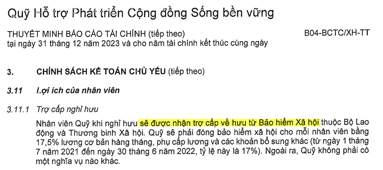 Có một bạn gửi cho tôi file báo cáo tài chính của Quỹ Hỗ trợ Phát triển Cộng đồng Sống bền vững (gọi tắt là Quỹ Sống - quỹ từ thiện do chị Jang Kều quản lý). Bạn ấy nói rằng những người trong Quỹ này làm "NGHỀ TỪ THIỆN", vì họ có lương hàng tháng cho việc làm từ thiện, có thưởng tết, có BHXH... và những khoản tiền này đều được rút từ Quỹ từ thiện ra.