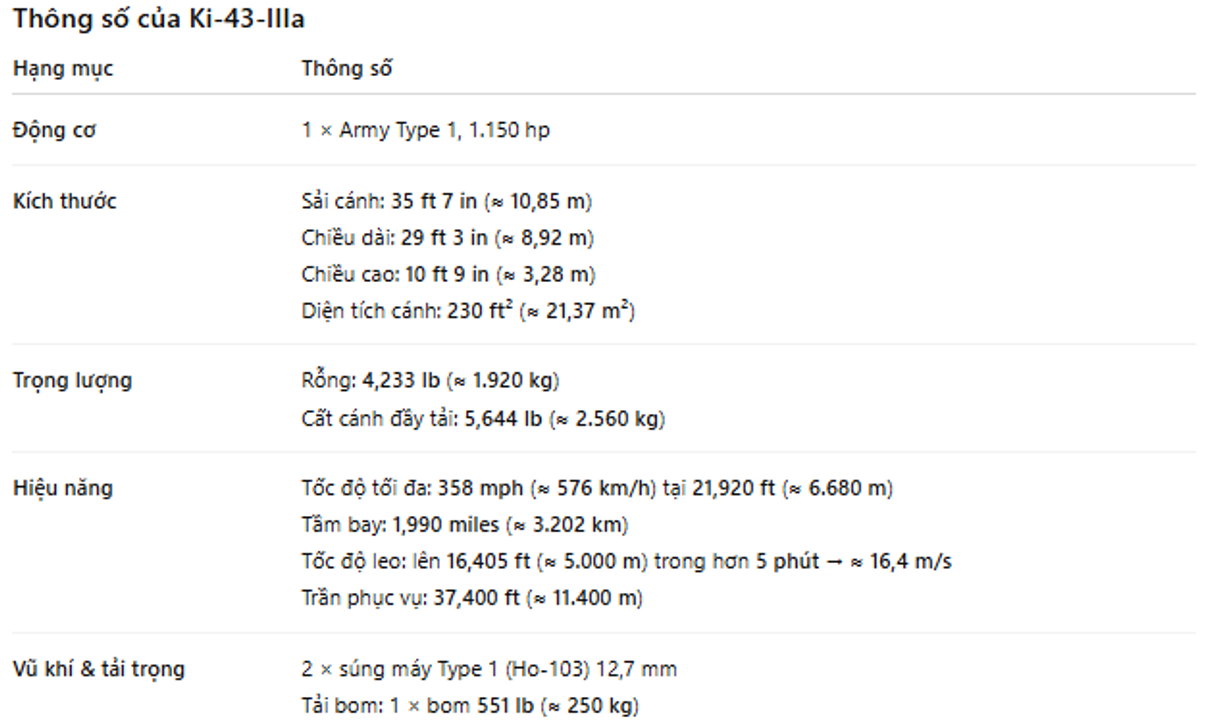 Việc phát triển Ki-43 bắt đầu từ năm 1937 và tập trung vào khả năng cơ động, nhưng đồng thời cũng cải thiện tầm bay và tốc độ so với mẫu Ki-27 trước đó. Các thử nghiệm ban đầu cho thấy Ki-43 không tốt hơn bao nhiêu so với Ki-27 có càng đáp cố định, và việc bàn giao “Oscar” đầu tiên cho phi đội phải đến tháng 6 năm 1941 mới diễn ra. Mẫu đầu tiên, Ki-43-I, được coi là thiết kế tạm thời, và công việc phát triển biến thể cải tiến Ki-43-II được tiến hành ngay sau đó. Đây là phiên bản được sản xuất nhiều nhất. Dù đạt thành công trong giai đoạn đầu chiến tranh, Ki-43-II nhanh chóng bị các đối thủ Đồng Minh vượt trội. Dù tiêm kích Nhật này có khả năng cơ động xuất sắc, song nó lại có tốc độ tối đa kém hơn, hỏa lực yếu chỉ gồm hai súng máy 12,7mm, và giống như Zero-sen, hầu như không có bảo vệ cho phi công hoặc thùng nhiên liệu. Năm 1944, biến thể cải tiến Ki-43-III được đưa vào phục vụ, với động cơ mạnh hơn giúp tăng tốc độ tối đa. Tuy nhiên, hỏa lực yếu kém của nó vẫn không thay đổi. Khi được sử dụng như máy bay kamikaze, Ki-43-II và Ki-43-III có thể mang một quả bom nặng 551 pound gắn dưới thân hoặc cánh.