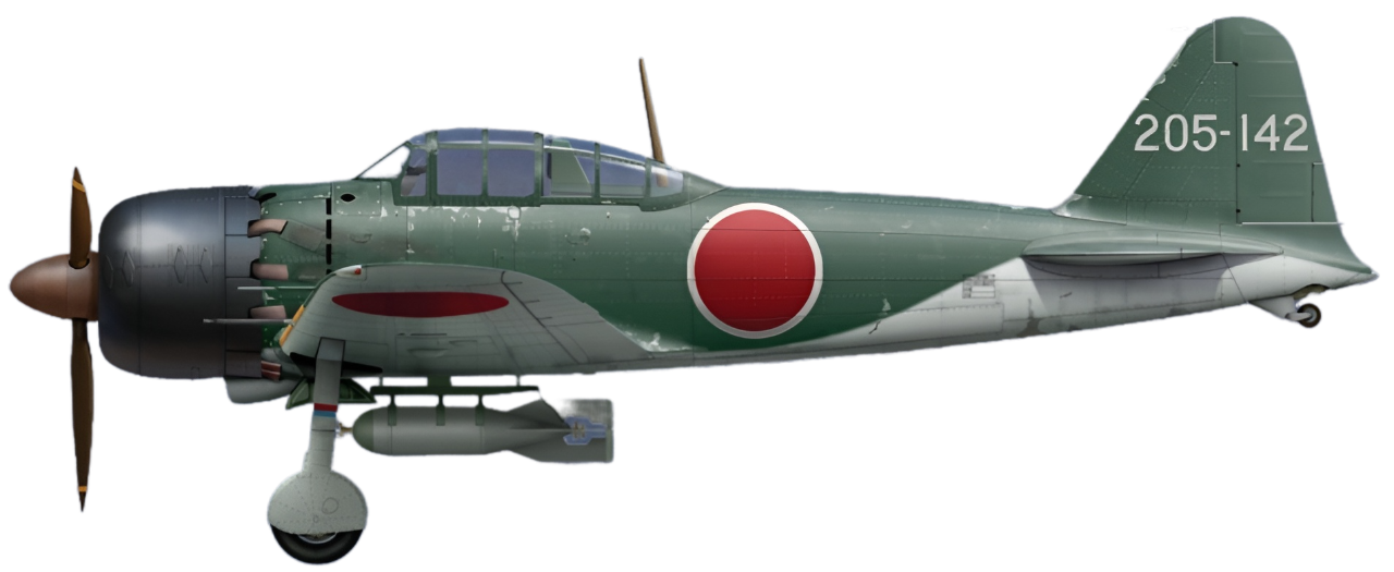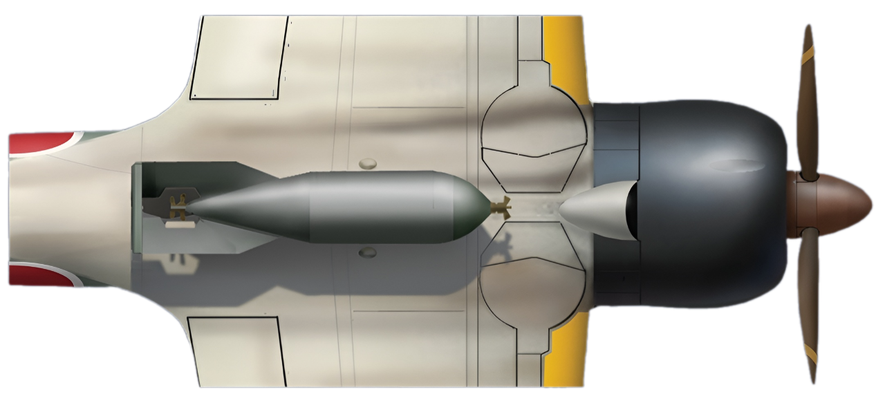 Các phiên bản Zero-sen mạnh hơn là A6M5 và A6M7 có thể mang tải trọng vũ khí lên đến 1.100lb trên một giá treo trục giữa duy nhất. Tuy nhiên, thông thường chiếc máy bay sẽ được trang bị một quả bom Tyep 99 No.25 Model 1 nặng 551lb, như thấy hình ảnh ở đây. Thân bom được gia công từ một khối thép rèn dày 3/4 inch. Phần mũi được tiện ren để lắp ngòi nổ, trong khi phần đuôi thân bom cũng được tiện ren bên trong để lắp tấm đáy dạng trụ đực. Tấm đáy này được khoan lỗ ở giữa để lắp ngòi nổ đuôi. Chóp đuôi bom được cố định vào tấm đáy bằng sáu con vít. Bốn cánh ổn định được hàn vào chóp đuôi và được gia cố bởi một bộ giằng hộp đơn. Thân bom được nạp đầy thuốc nổ Type 91 (trinitroanisol). Được thiết kế vào năm 1938 và được Hải quân Đế quốc Nhật Bản chấp nhận đưa vào sử dụng năm sau, bom Type 99 No.25 Model 1 có khả năng xuyên thủng 50mm giáp thép trước khi phát nổ.