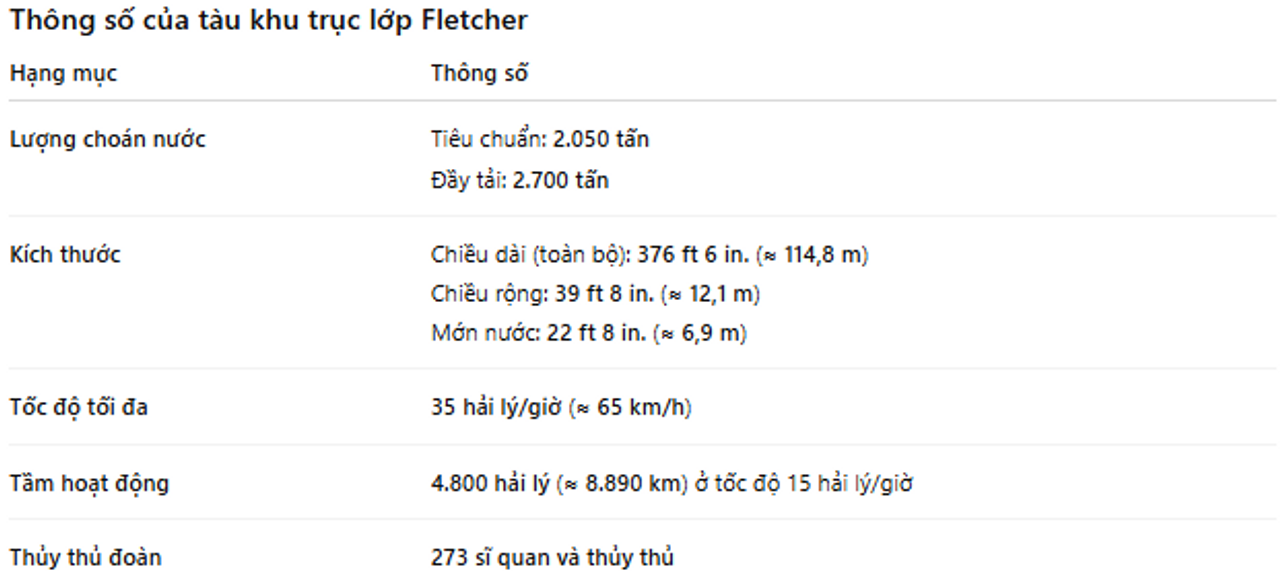 Những hình minh họa này cho thấy một tàu khu trục lớp Fletcher trong cấu hình điển hình năm 1944. Chú ý dàn hỏa lực phòng không mạnh mẽ gồm năm khẩu pháo đơn 5 inch/38 cùng với nhiều giá lắp pháo 20mm và 40mm. Hải quân Mỹ đã biên chế 175 tàu khu trục lớp Fletcher trong giai đoạn từ 1942 đến 1944 và 19 chiếc đã bị mất trong Thế chiến II. Trong số này, 12 chiếc bị kamikaze đánh chìm, sáu chiếc khác bị hư hại nặng đến mức không được sửa chữa. Chín tàu khu trục lớp Fletcher bị hư hại nghiêm trọng bởi kamikaze trong chiến dịch Okinawa.