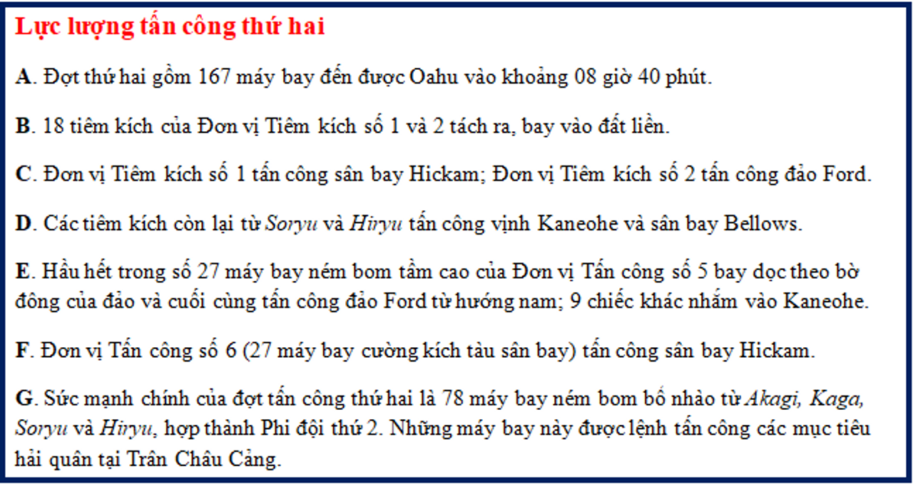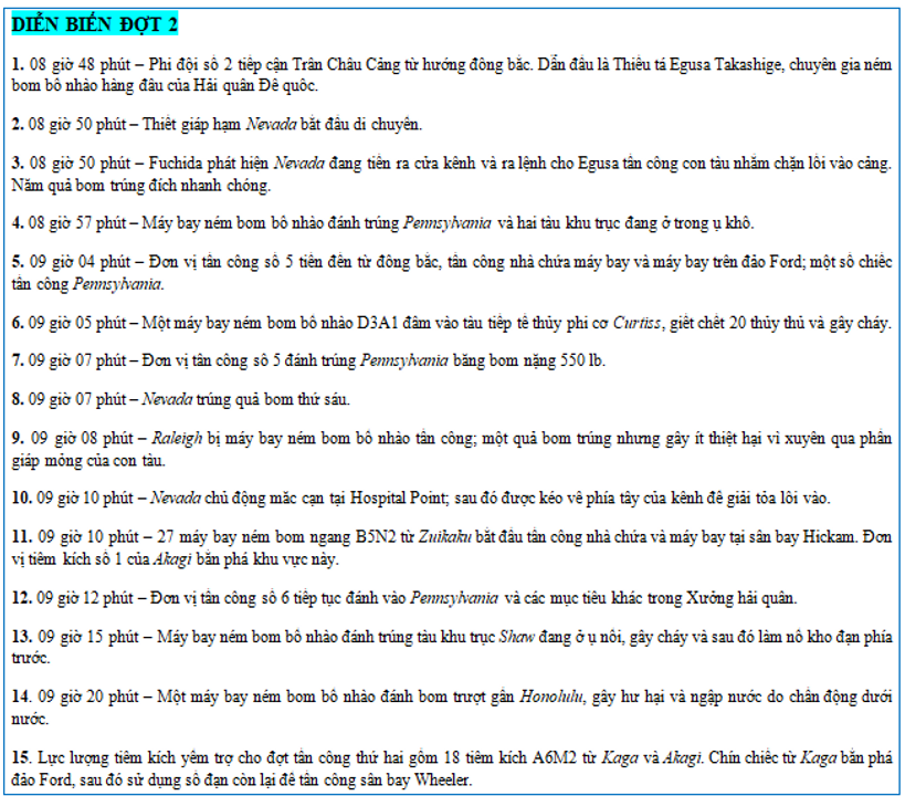 Bản đồ về đợt tấn công thứ hai vào Trân Châu Cảng từ lúc 08 giờ 48 phút - 09 giờ 20 phút.