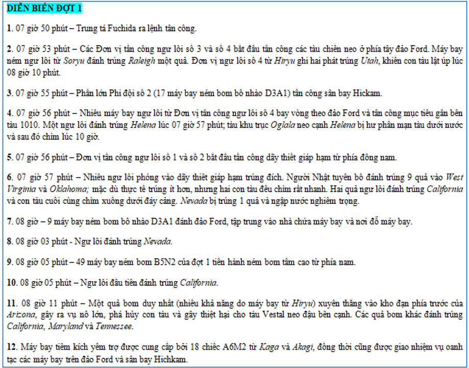 Bản đồ về đợt tấn công thứ nhất vào Trân Châu Cảng từ lúc 07 giờ 50 phút - 08 giờ 11 phút.