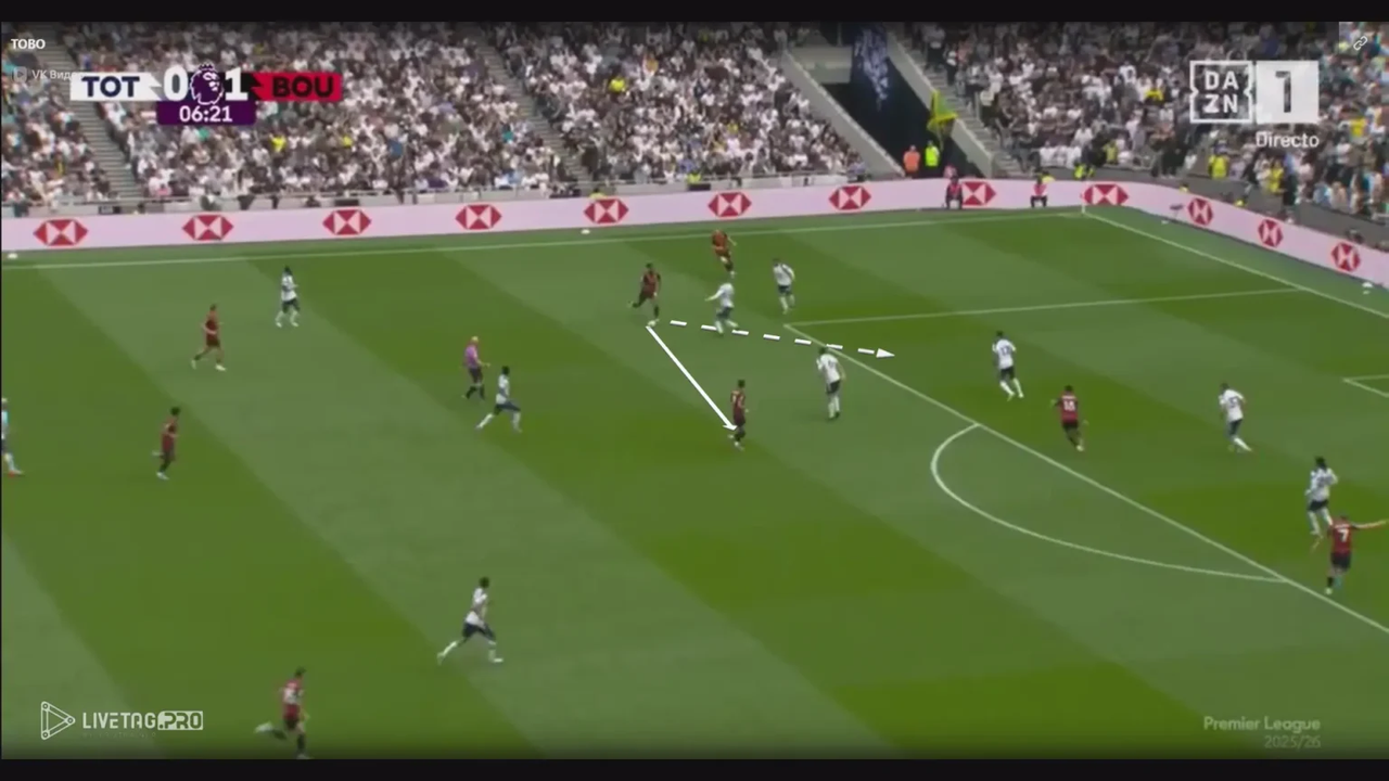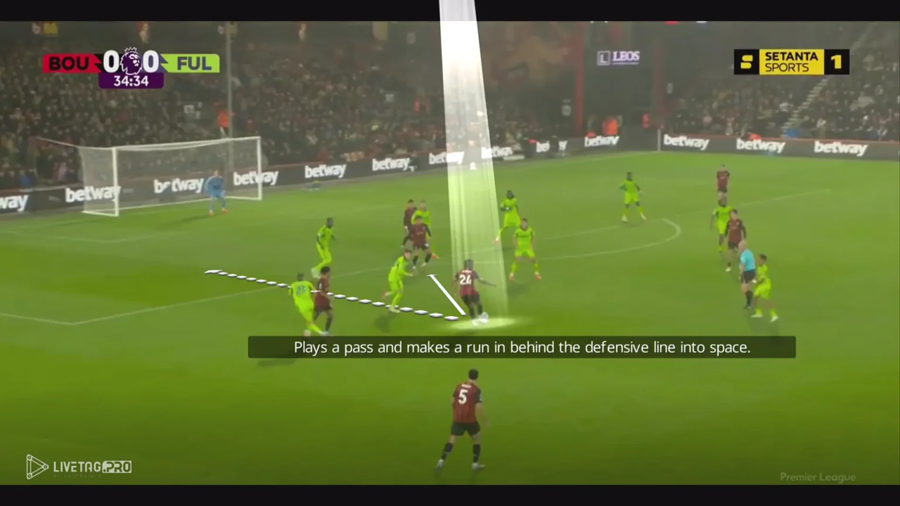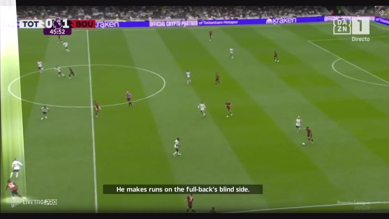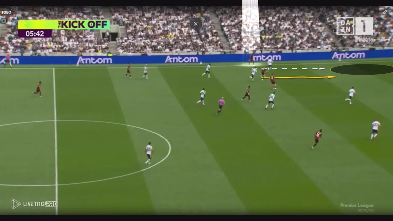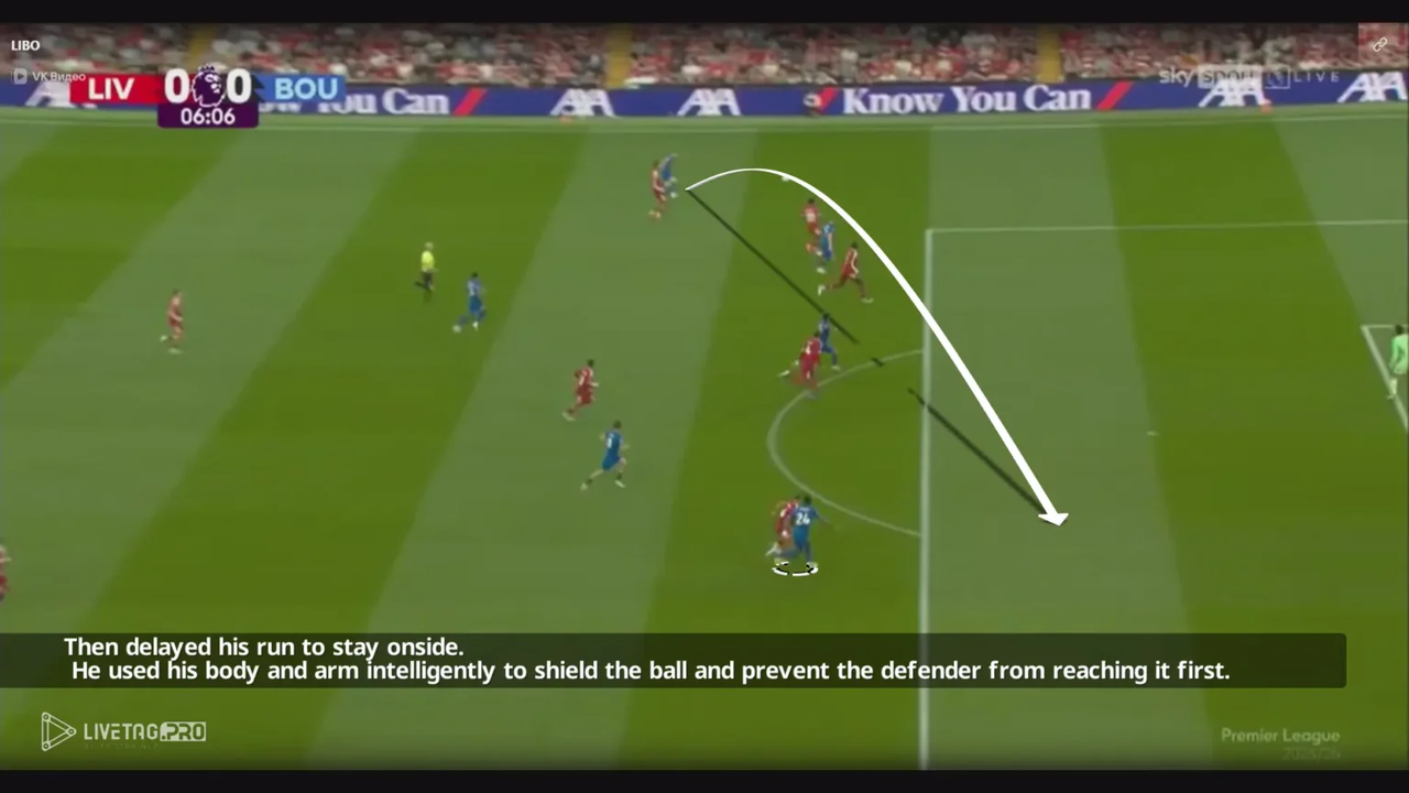 Hơn nữa, bằng cách chọn vị trí ở phía xa hậu vệ cuối cùng, Semenyo tạo ra khoảng tách cần thiết trong khi vẫn duy trì tư thế sẵn sàng thực hiện những pha chạy chọc khe ngay lập tức.