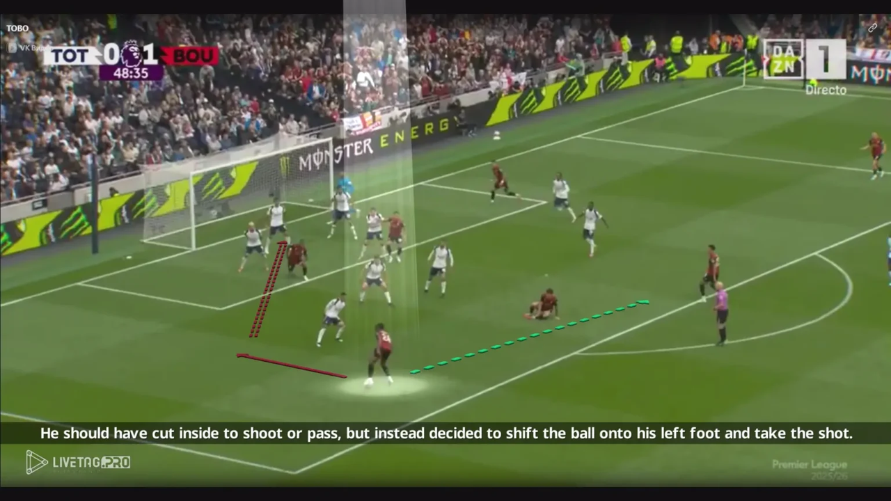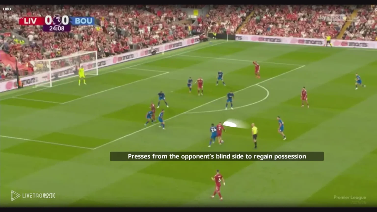 Semenyo hoạt động ấn tượng và đóng vai trò then chốt trong hệ thống của Bournemouth khi không có bóng. Đóng góp phòng ngự của anh thể hiện cả năng lực thể chất lẫn khả năng nắm bắt cấu trúc tập thể, những phẩm chất cốt lõi trong lối chơi cường độ cao của Andoni Iraola.