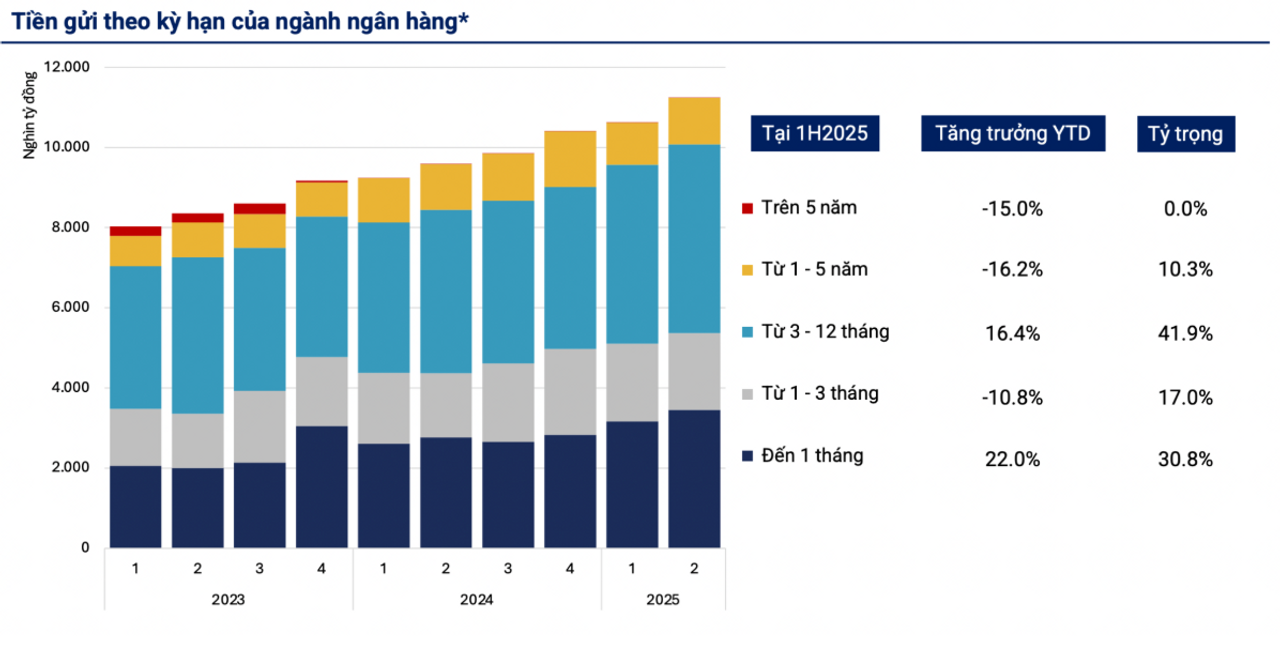 Thật ra, câu chuyện này thật ra không mới, nhưng càng ngày càng lộ rõ. Phần lớn tiền gửi của người dân hiện nay là ngắn hạn, chủ yếu 1 đến dưới 12 tháng, đa số là nguồn ngắn hạn, vì behaviour “cần thì rút liền”. Trong khi đó, nhu cầu vay của doanh nghiệp, đặc biệt là bất động sản, hạ tầng, hay công nghiệp chế biến, lại toàn trung và dài hạn, kéo dài từ 3 đến 10 năm. Kết quả là, ngân hàng rơi vào thế khó. một bên tài sản nợ là tiền ngắn, một bên tài sản có là khoản vay trung và dài. Nó giống như việc mượn tiền A trong 6 tháng rồi đem cho người B3 năm, chỉ cần một cú mismatch về thanh khoản, là cả hệ thống có thể lao đao.