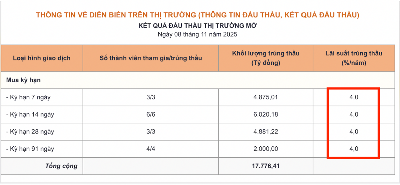 Ta có thể thấy lãi suất OMO duy trì mức 4% và mức lãi suất này đã duy trì khá lâu từ đầu năm 2025 cho tới hiện tại, thế nhưng nếu bạn kiểm tra lãi suất Interbank (TT2) hiện tại thì đã gần tới 6%.