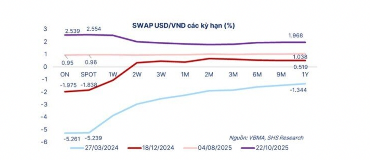 Điều này với cá nhân tôi là một việc tốt, vì khi lãi suất TT2 cao như vầy thì SWAP ON sẽ dương và tỷ giá sẽ đỡ bị giật cục, cập nhật một xíu cho đến hiện tại thì SWAP dương ở các kỳ hạn 1Y, 2Y, điều này cho thấy lãi suất liên ngân hàng VND đang cao hơn lãi suất SOFR USD, điều này có thể sẽ kìm được việc tăng của tỷ giá, là một tín hiệu đáng mừng, đối với tôi đây là một bước đi khá okkk đến từ SBV khi họ duy trì lãi suất TT2 cao như vậy. Tuy vậy, hệ quả của việc để lãi suất TT2 cao như vậy cũng sớm dễ thấy đó là đồng loạt lãi suất các bank đều tăng lên.