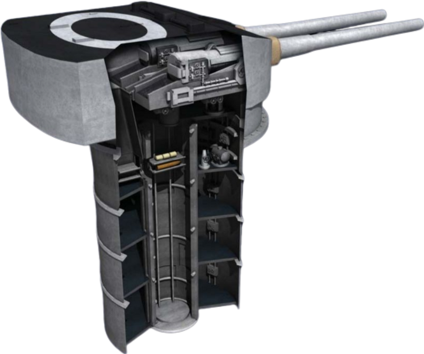 Hỏa lực của tàu được điều khiển bởi sĩ quan pháo binh, người này thường đứng trong tháp bọc thép nằm phía trên và phía sau tháp chỉ huy (conning tower).