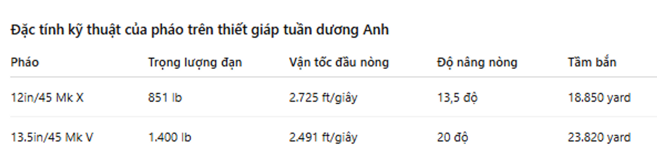 Theo kế hoạch trước chiến tranh, người Anh dự định khai hỏa ở cự ly 15.000 yard, sau đó rút ngắn dần khoảng cách để đạt tốc độ bắn tối đa ở 12.000–13.000 yard. Họ kỳ vọng tầm bắn hiệu quả thực tế là khoảng 8.000–10.000 yard.