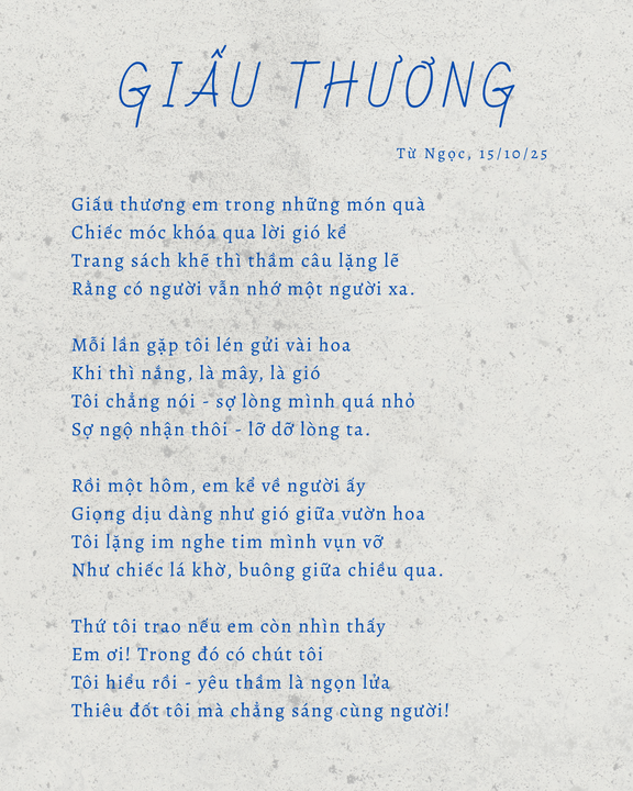 Có những rung động không bùng cháy mà âm ỉ lớn lên mỗi ngày. "Giấu thương" là khi mình thôi tự hỏi đó chỉ là mến mộ hay yêu. Nhưng bông hoa ấy đã tìm thấy ánh nắng của riêng mình.