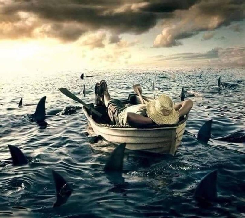 Bây giờ tôi biết mình đã bại trận hoàn toàn, không thể nào cứu vãn nổi. Tôi quay lại đằng lái, tìm đoạn tay lái gãy lởm chởm còn đủ dài để lắp vào ổ lái, đưa thuyền vào bờ. Trong đêm, đàn cá mập kéo đến gặm bộ xương. Tôi chẳng buồn bận tâm đến chúng và cũng không để ý đến bất cứ chuyện gì ngoài việc lái thuyền.