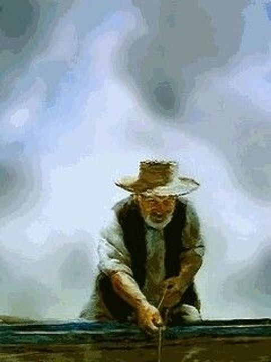 "Nó sắp đớp mồi", tôi nói lớn. "Xin Chúa hãy giúp nó đớp mồi". Nhưng con cá không đớp, nó bỏ đi. "Nó không thể đi", tôi nói. "Nó đang lượn vòng. Có lẽ trước đây nó đã bị dính câu nên nó nhớ đôi điều về chuyện ấy". Lúc ấy tôi cảm thấy sợi dây khẽ giật, tôi hớn hở. "Nó chỉ lượn một vòng thôi mà", tôi nói. "Nó sẽ cắn câu".