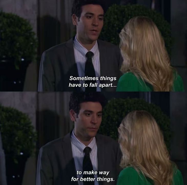 Cuối cùng thì, mình không biết nội dung này có hơi kém tích cực không nữa. Nhưng mà, như nhân vật Ted Mosby trong bộ phim HIMYM đã nói: “Sometimes things have to fall apart to make way for better things.”