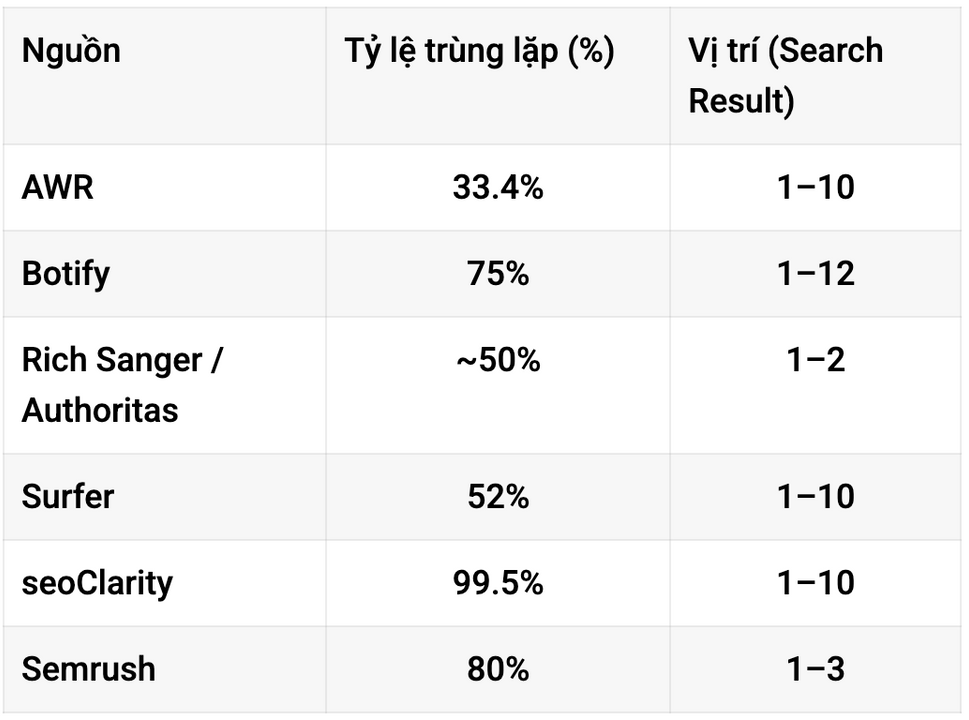 - Surfer: 52% nguồn được trích dẫn xếp hạng trong 10 kết quả hàng đầu.