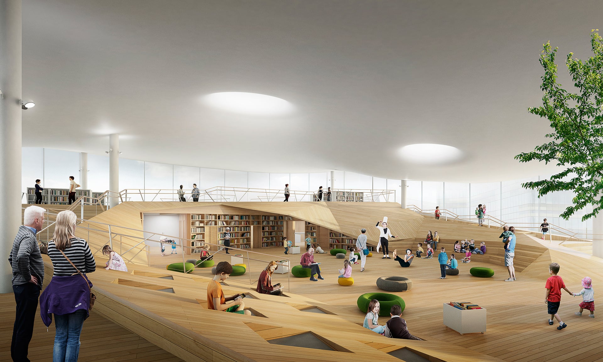 Những không gian này không được thiết kế để trở thành các ngôi đền bụi bặm cho sách vở. Chúng là những không gian sống động, được thiết kế cẩn thận để tích cực thu hút các cộng đồng đô thị sử dụng chúng. Thư viện ở Maunula, một vùng ngoại ô phía bắc Helsinki, có một cánh cửa dẫn thẳng đến một siêu thị - một quyết định thú vị và thiết thực, cùng với trung tâm tâm giáo dục người trưởng thành và khu dịch vụ thanh niên, cho thấy nó được thiết kế có sự đóng góp từ người dân địa phương.