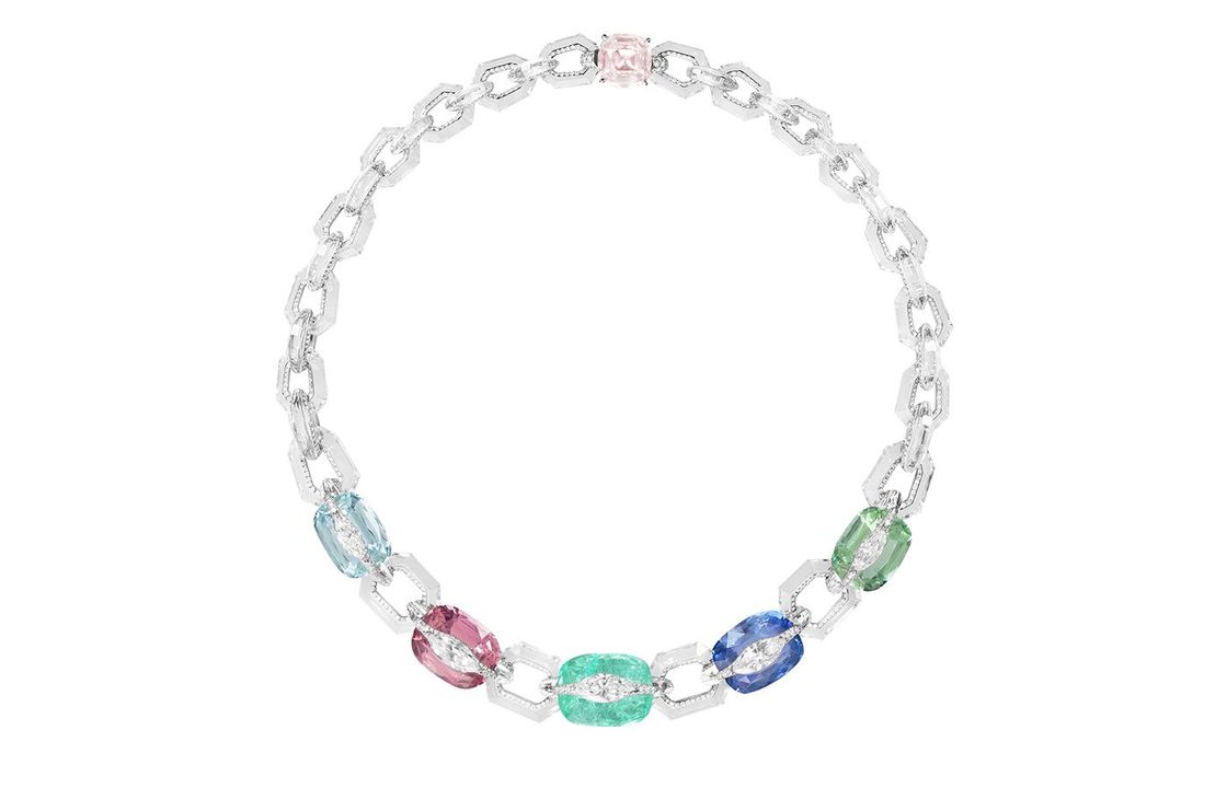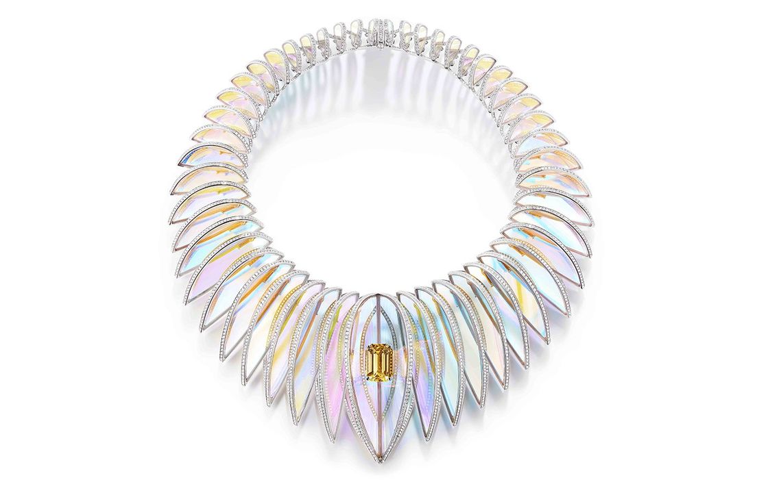 Vòng cổ trang sức cao cấp Chanel Crystal Stopper từ Bộ sưu tập 2021 số 5 với các thạch anh pha lê hình bát giác được đính kim cương và kết hợp với mã não, ngọc trai và sapphire màu vàng. Và tôi sẽ không muốn quên chiếc vòng cổ Cartier Theia từ Bộ sưu tập trang sức cao cấp Magnitude 2019 với ngọc lục bảo Colombia, thạch anh pha lê , kim cương và mã não bằng vàng trắng.
