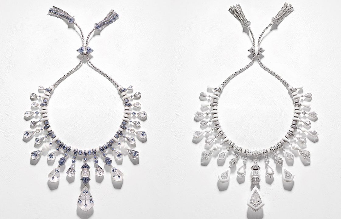 Trở lại năm 2015, tôi đã viết về Vòng cổ Bleu De Jodhpur với 248,3 carat giọt nước thạch anh pha lê được khảm kim cương và đá quý. Thử thách gắn đá quý vào thiết kế thạch anh pha lê này đòi hỏi hơn 1.700 giờ làm việc để biến tác phẩm cuối cùng thành hiện thực.