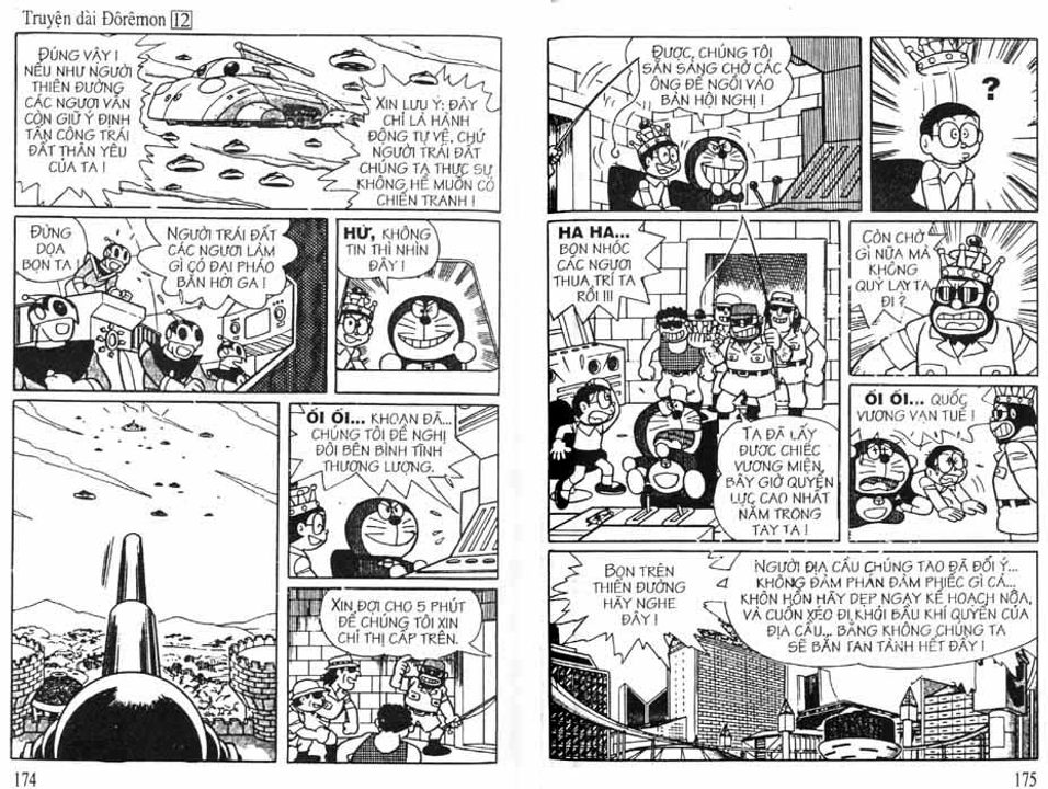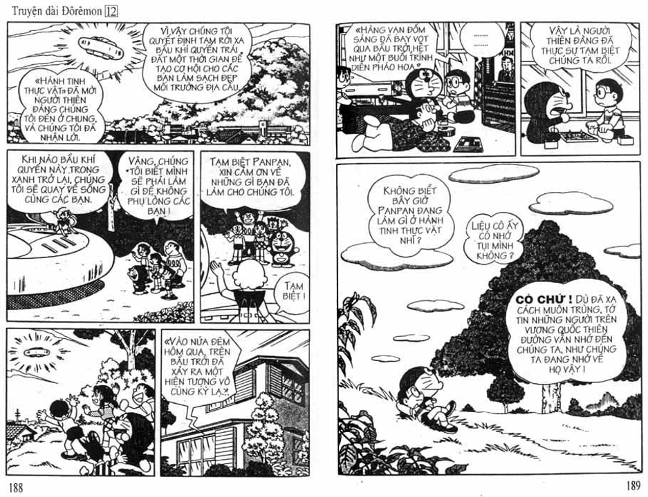 Cư dân địa cầu đây, Người Thiên Đường cuối cùng đã đánh bài chuồn, để lại một "Trái Đất bẩn thỉu" cho Người Mặt Đất đi dọn dẹp hậu quả. Thực sự họ quá vô trách nhiệm với hành tinh họ sinh sống, cho dù đó phần nhiều là lỗi của Người Mặt Đất. Chi tiết cuối truyện dưới góc nhìn trẻ thơ có vẻ là một cái kết đẹp cho cả hai bên, nhưng thực sự là một chi tiết đầy tính châm biếm, mỉa mai, quá bái phục bác Fujiko khi xây dựng được những chi tiết đắt giá, nhiều tầng nghĩa này của tác phẩm.