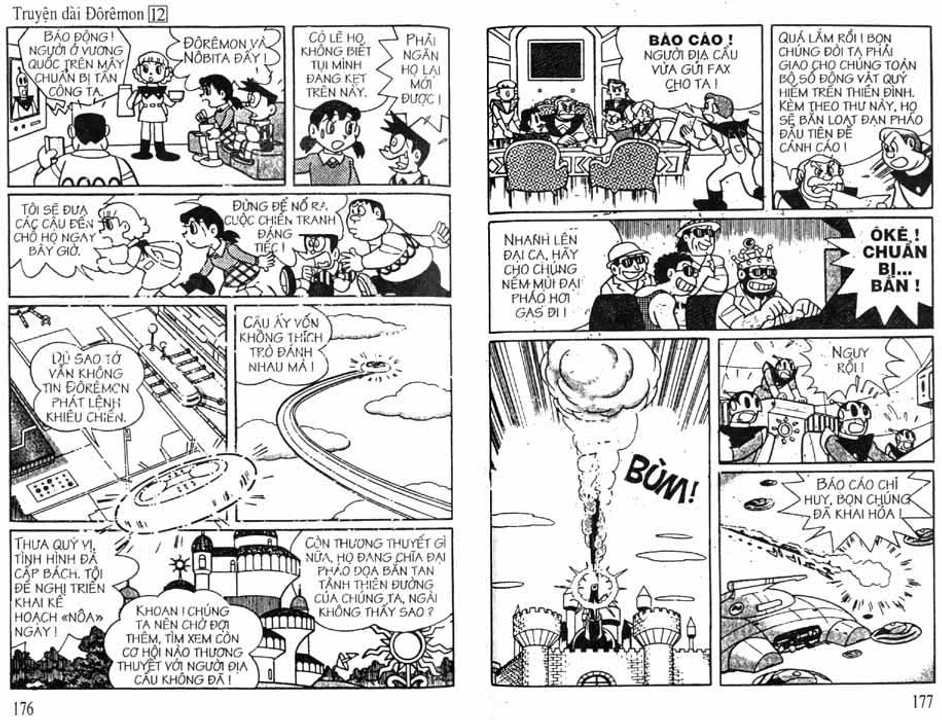 Hùng hổ thị uy là thế, đến khi bị đe dọa đến lãnh thổ, sự sinh tồn thì cũng co vòi ngay, thật ra thì Người Thiên Đường cũng rất dễ bị tổn thương chứ chả có gì là bất khả chiến bại. Nghịch lý đặt ra là, họ có cảm nhận được thế giới mặt đất khốn cùng, đau khổ như thế nào sau khi sử dụng Đại Hồng Thủy NOAH hay không ? Việc bị bọn thợ săn tấn công có lẽ đã phần nào làm cho Người Thiên Đường chột dạ, suy nghĩ lại về hành động của mình, có lẽ đây mới chính là động cơ lớn nhất khiến cho họ phải xuống thang chứ không phải từ những lời biện hộ của bé cây Kibo, nếu họ kiên quyết sử dụng Đại Hồng Thủy NOAH lên hạ giới thì nhóm Doraemon cũng sẽ ăn miếng trả miếng bằng cách sử dụng hơi ga hóa giải mây đối với họ, cả hai bên cùng diệt vong, một kịch bản tồi tệ mà chắc chắn Người Thiên Đường không hề muốn thế... Nhưng có hoà đàm thoái lui cũng phải ngẩng cao đầu không thể nhận thua để mất mặt, bé cây Kibo nắm rõ tâm lý này nên đã đưa ra một giải pháp làm đẹp lòng Người Thiên Đường.