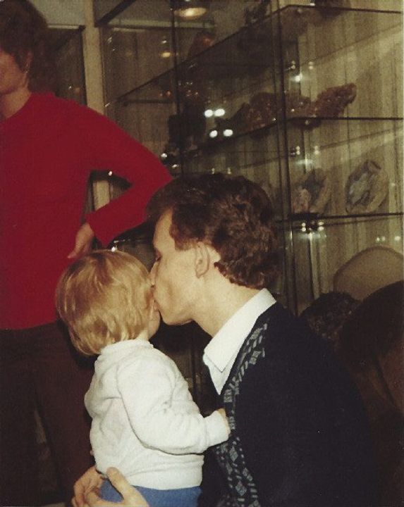 Gian hàng khoáng sản của Gerhard tại triển lãm khoáng sản mùa xuân năm 1992 ở Stuttgart, Đức với sự hỗ trợ của con gái ông, Jacqueline. Ảnh lưu trữ của Gerhard Wagner.