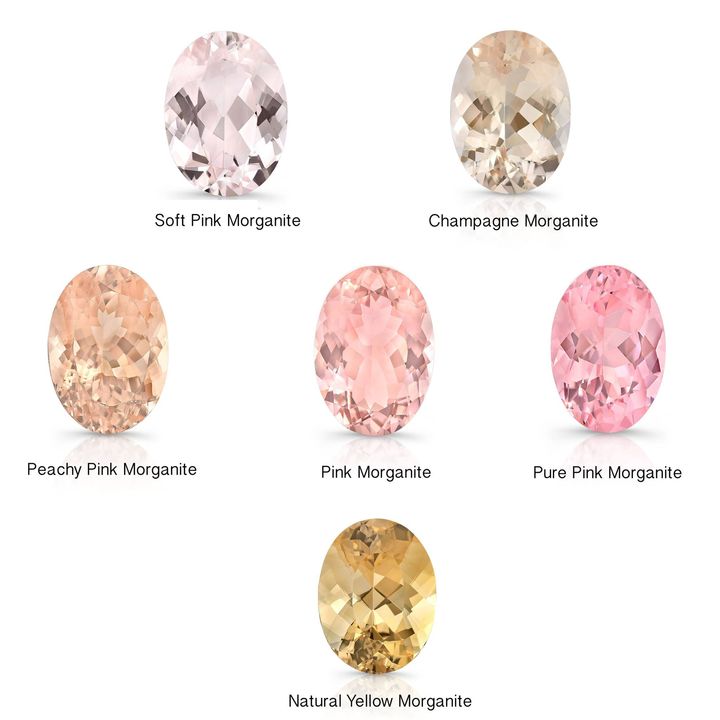 Morganite có màu sắc từ cam hơi vàng, đến cam, đến hồng phớt, hồng, đến hồng hơi tía. Dải màu này thu hút nhiều người và khi kết hợp trong các loại trang sức bằng vàng hồng, khiến chúng càng trở nên hấp dẫn hơn.