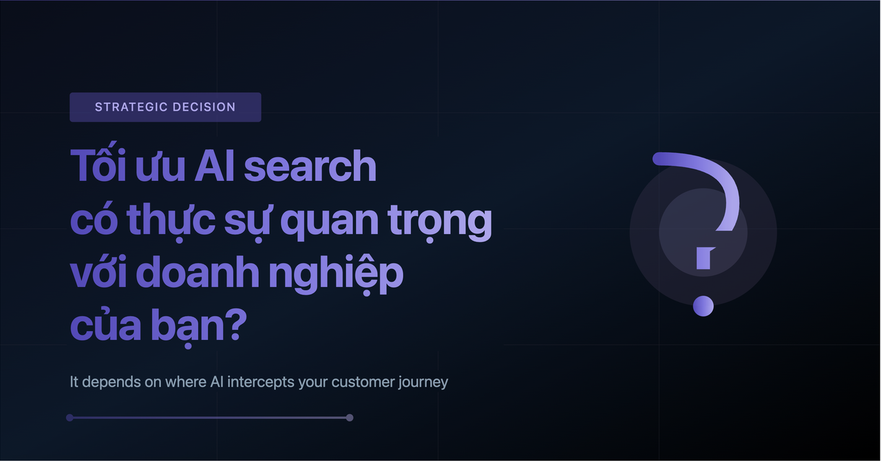 Nhiều đội marketing đang tái cấu trúc toàn bộ chiến lược nội dung để được ChatGPT, Claude và Gemini trích dẫn. Nhưng liệu việc xuất hiện trong câu trả lời AI có thực sự ảnh hưởng đến doanh thu? Câu trả lời phụ thuộc hoàn toàn vào vị trí AI can thiệp vào hành trình mua hàng của người dùng.