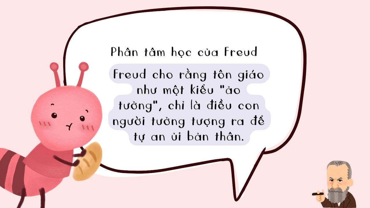 Freud cho rằng tôn giáo như một kiểu "ảo tưởng", không phải điều thiêng liêng thật sự, mà chỉ là điều con người tưởng tượng ra để tự an ủi bản thân. Theo ông, khi con người sợ hãi, yếu đuối hoặc không kiểm soát được cuộc sống, họ tạo ra hình ảnh một “đấng quyền năng” để cảm thấy được bảo vệ.