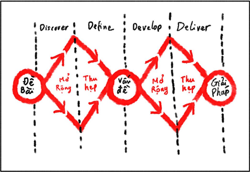 Bạn sẽ nhận ra vấn đề thật chưa được xác định rõ. Nếu cứ lao vào làm, bạn sẽ dễ tạo ra một bản thiết kế mà bạn tưởng là được nhưng chưa chắc đã xong việc. Đây chính là lúc bạn nên biết phương pháp tư duy Double Diamond (Kim cương kép).