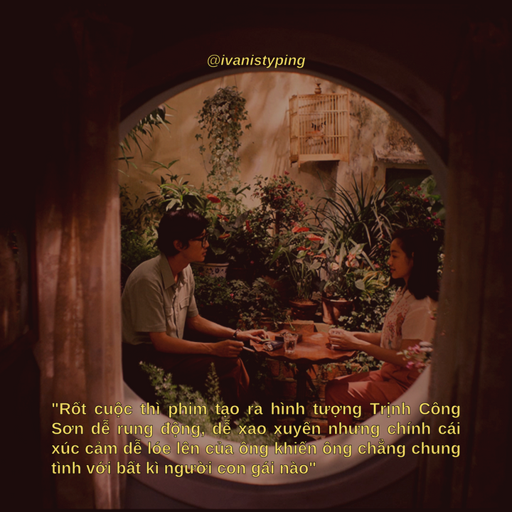 Rốt cuộc thì phim tạo ra hình tượng Trịnh Công Sơn dễ rung động, dễ xao xuyến nhưng chính cái xúc cảm dễ lóe lên của ông khiến ông chẳng chung tình với bất kì người con gái nào, hoặc có thể ông chung tình nhưng với tất cả các cô gái mà ích kỷ, muốn giữ tất cả mọi người như một điểm đến cảm xúc trong cuộc đời mình, không biết có mảy may nghĩ đến cảm xúc của người con gái luôn nhớ thương mình ở cái thành phố miền Trung thơ mộng, có mảy may nghĩ đến cảm xúc của cô gái hai con yêu anh, trao tiếng hát cho anh để anh cứ mãi giữ trong tâm trí một hình bóng của người khác, buông miệng nói câu anh chẳng yêu mình dù gắn bó với mình hằng ngày.