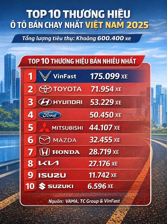 Tính đến tháng 11/2025, Vifast chiếm vị trí số 1 về doanh số xe bán ra với 147.450 chiếc, gần bằng doanh số của các hãng Toyota, Hyundai và Ford cộng lại.