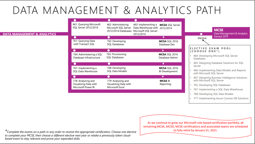 Bài thi mới và cung cấp dài hạn hơn so với MCSA sẽ ngừng cung cấp vào tháng 01-2021. (chứng chỉ đã nhận được vẫn còn hiệu lực)